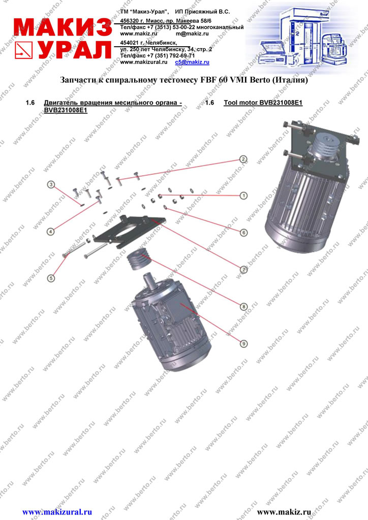 | Двигатель вращения месильного органа -BVB231008E1 | ||||
